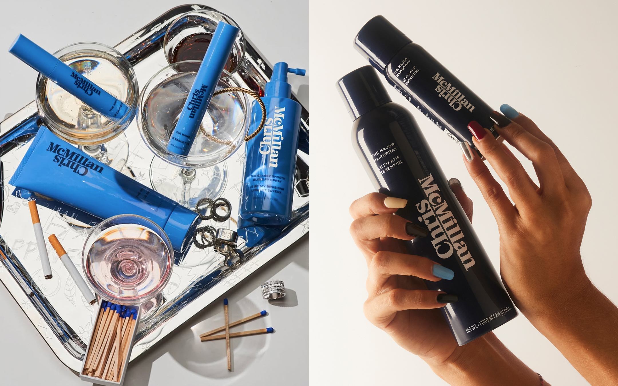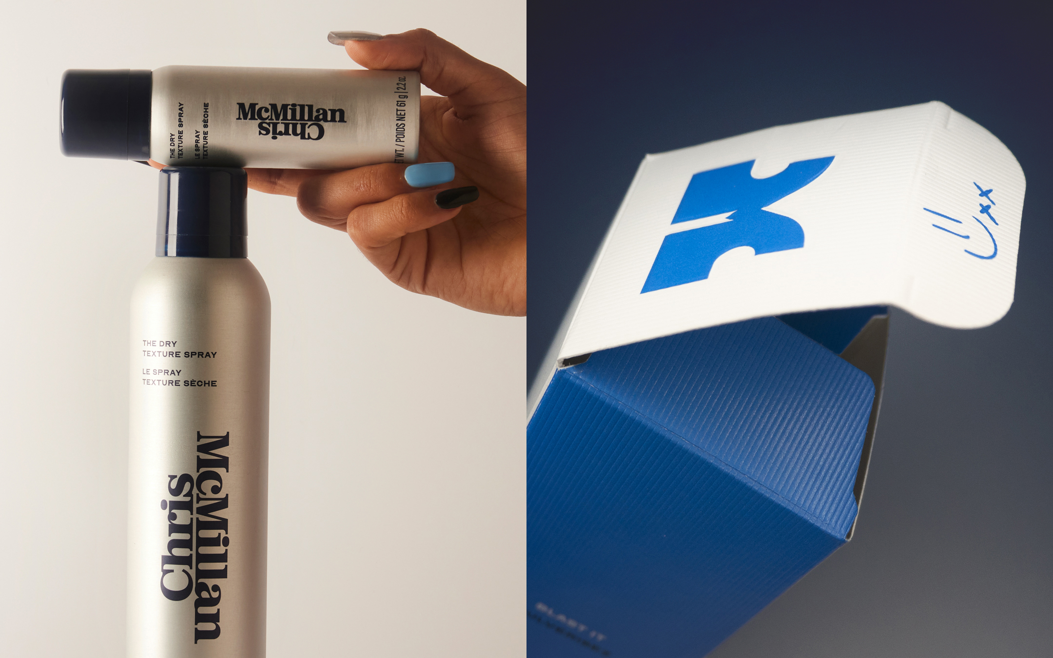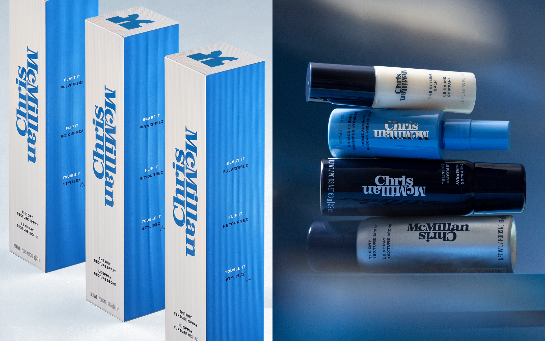 Logo and monogram design, color palette and packaging direction for Chris McMillan the man behind the legendary Rachel cut, who launched his own haircare line. The task was to create a unisex brand identity with a logo and a monogram that reflect Chris’s dynamic personality, as well as his taste for 70’s sleek design.